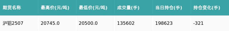 南财智讯6月18日电华信投资,南财金融终端盘后期货数据显示,上海期货交易所的沪铝主力合约收涨1.35%,收盘报20680.0元/吨,日内资金流入3712.94万元。其他相关指标见下表: